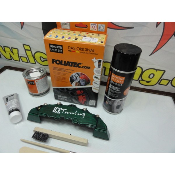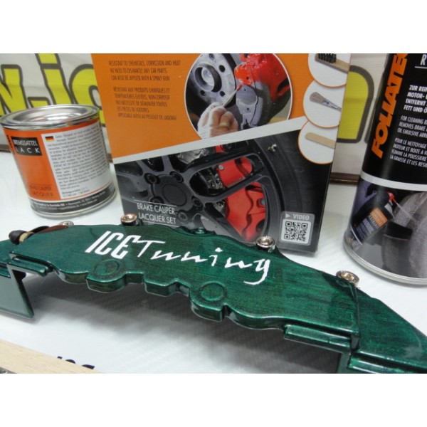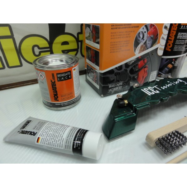 Tinta alta temperatura Foliatec verde metálico "green hell metalic", para bombas / pinças de travão, kit 3 componentes
