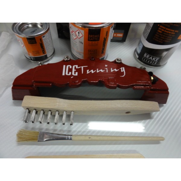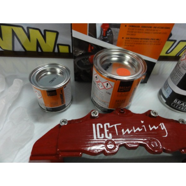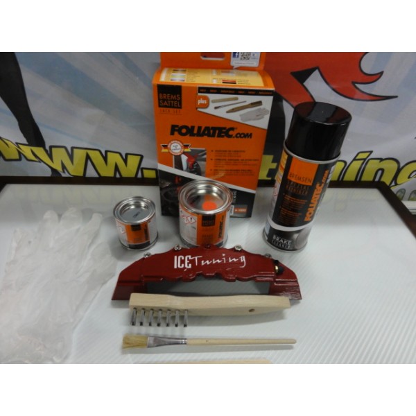 Tinta alta temperatura Foliatec, vermelho rosso, para bombas / pinças de travão, kit 3 componentes + kit de instalação