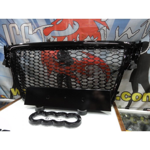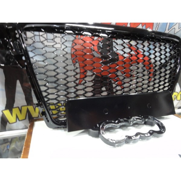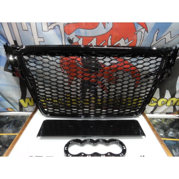 Grelha frontal AUDI A4 B8 08-11 RS4 look com suporte para símbolo em preto brilhante