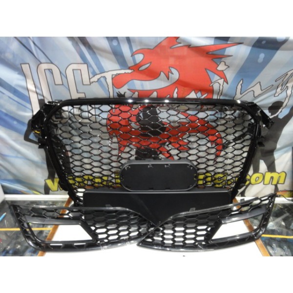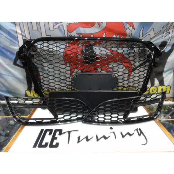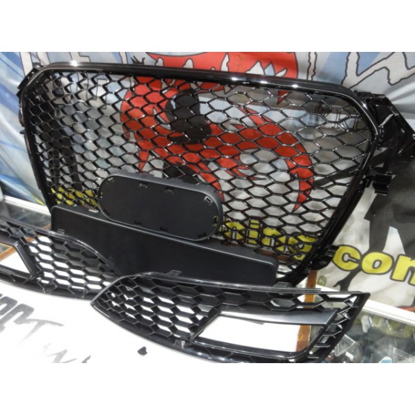 Grelha frontal + grelhas faróis nevoeiro Audi A4 B8 11-15 RS LOOK preto brilhante