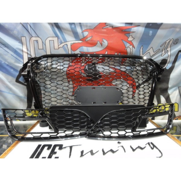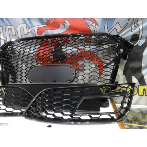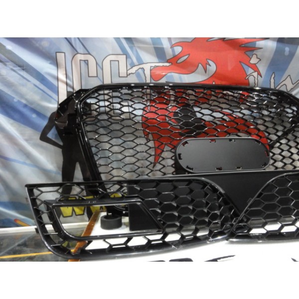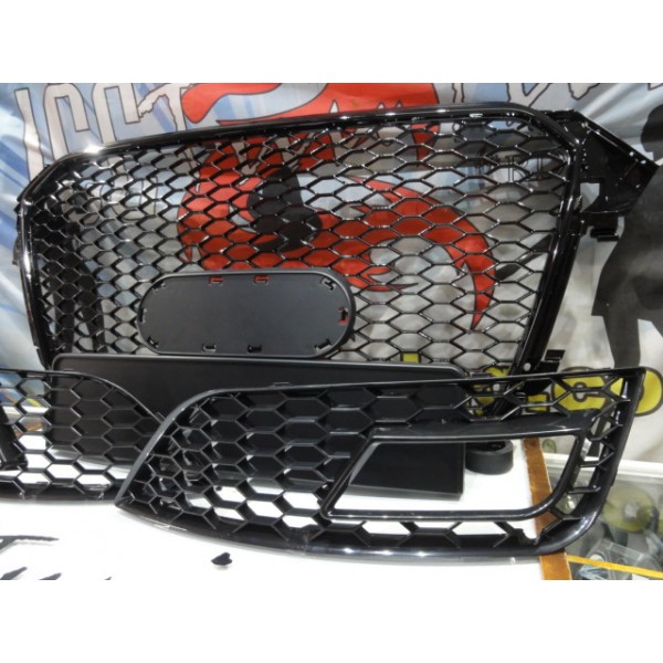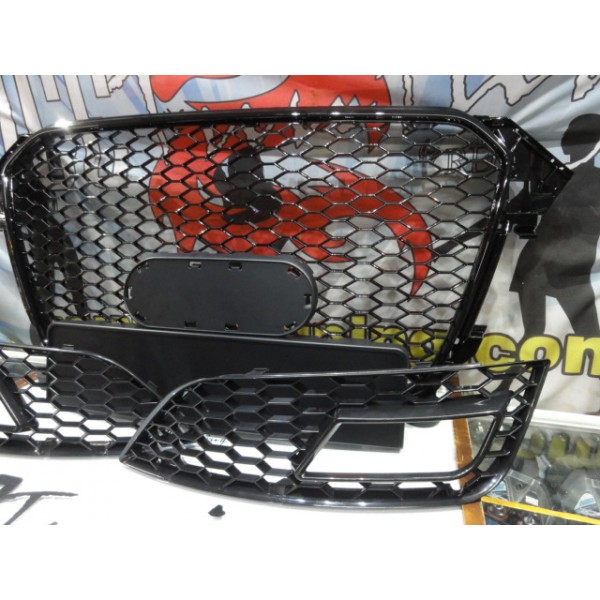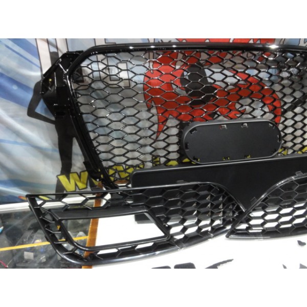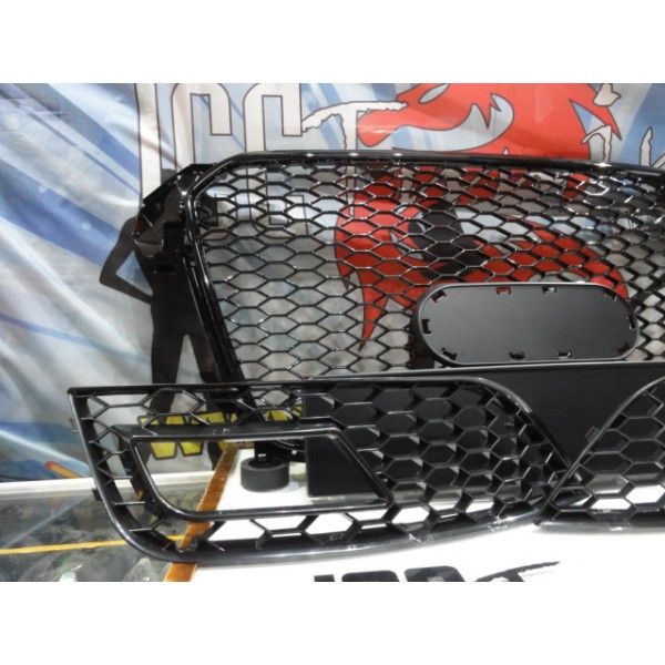 Grelha frontal + grelhas faróis nevoeiro Audi A4 B8 11-15 RS LOOK preto brilhante com suporte para símbolo