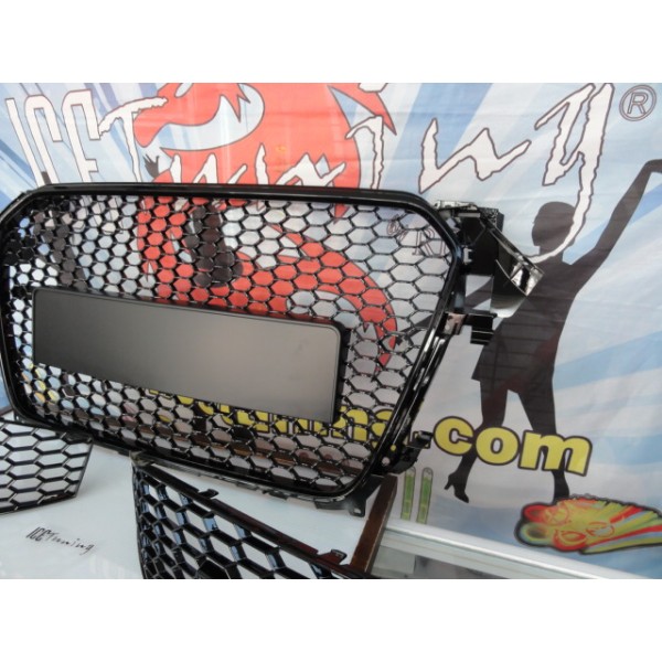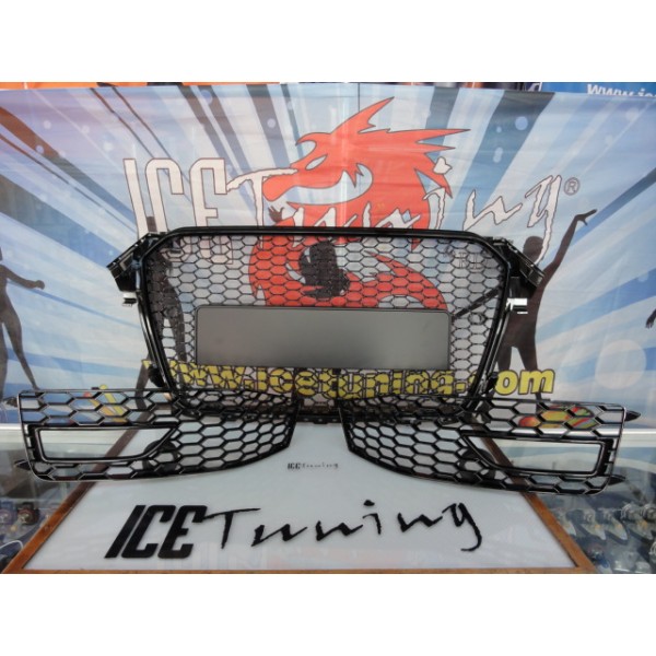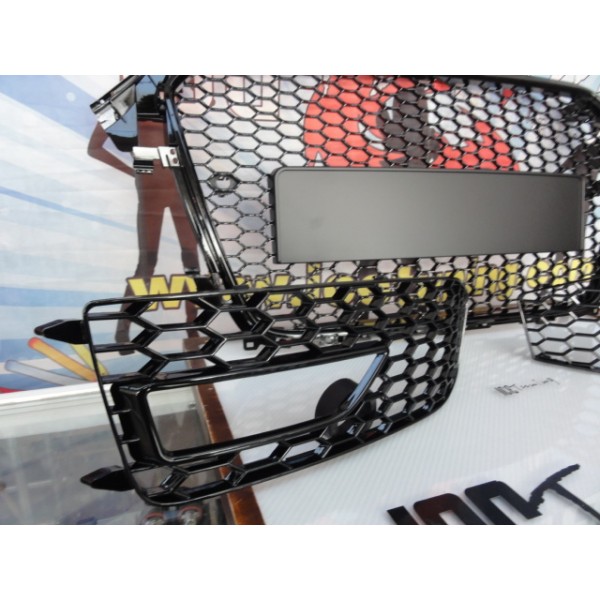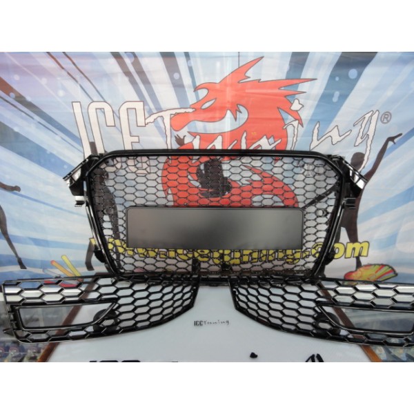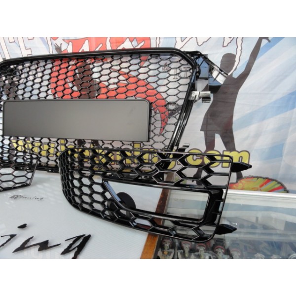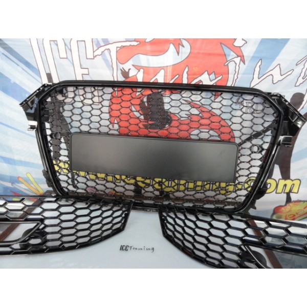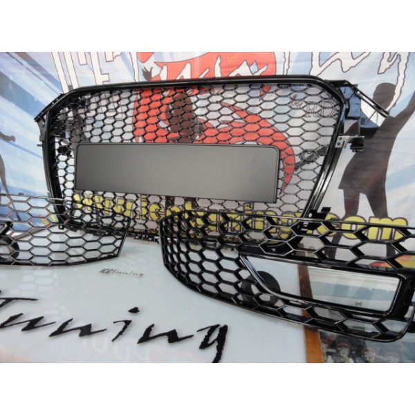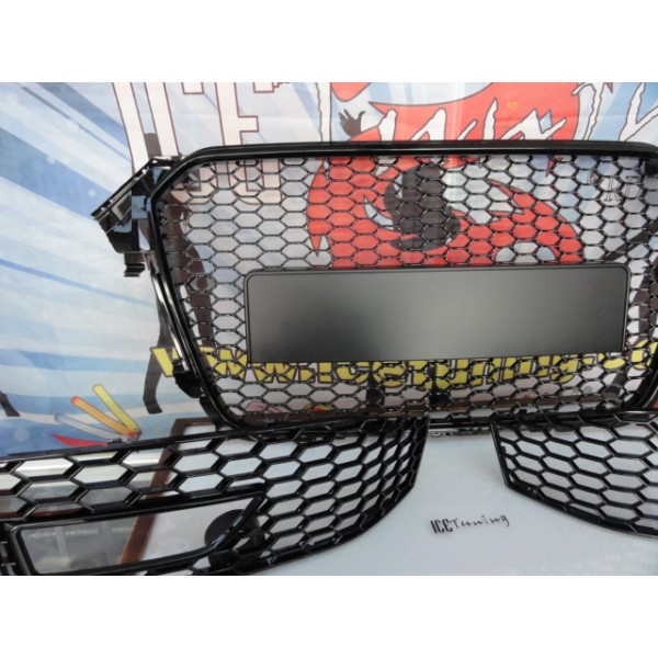 Grelha frontal + grelhas faróis nevoeiro para Audi A4 B8 12-15 com para-choques Sline RS LOOK preto brilhante com suporte para símbolo