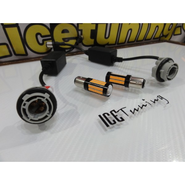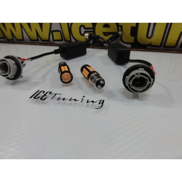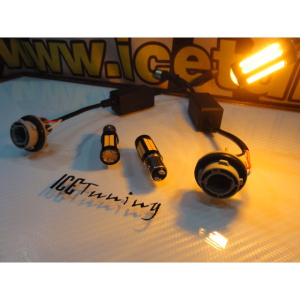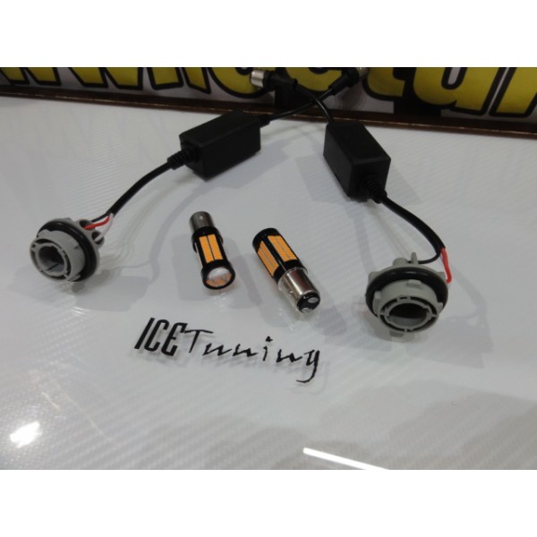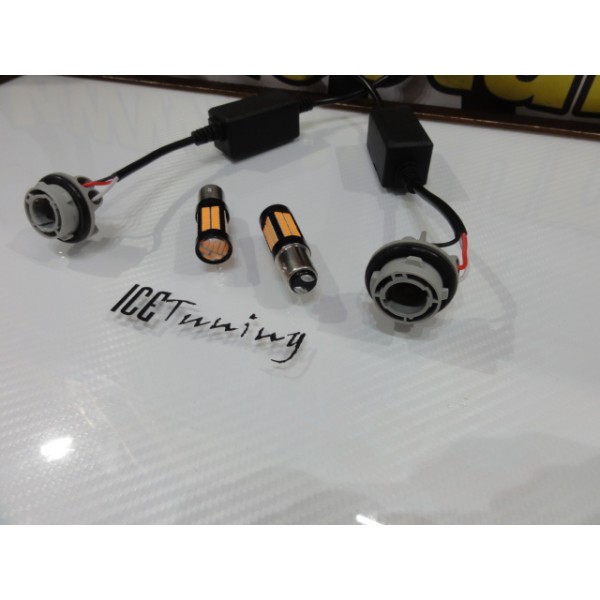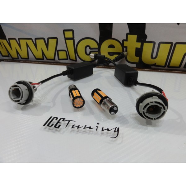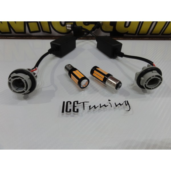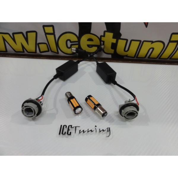 KIT Led Can Bus BAY15D / 21/5W / 2 Polos Laranja 9W, 680LUMENS 12-24v + Resistências CAN BUS