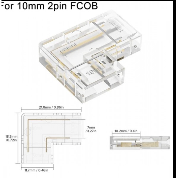 Conector rápido de tampa sem solda para cantos em "L" para tiras LED COB 10mm LED -LED / COB -COB / tira led - tira led
