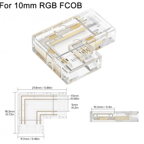 Conector rápido de tampa sem solda para cantos em "L" para tiras LED COB RGB 10mm LED RGB - LED RGB / COB RGB - COB RGB