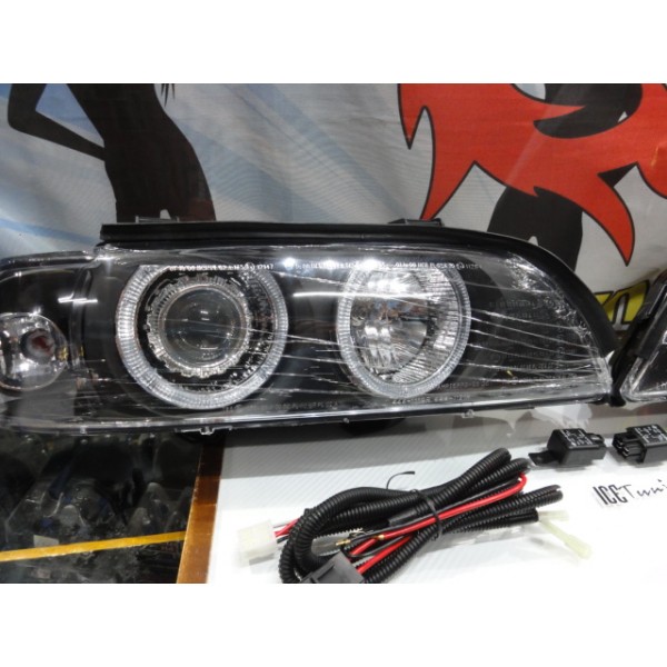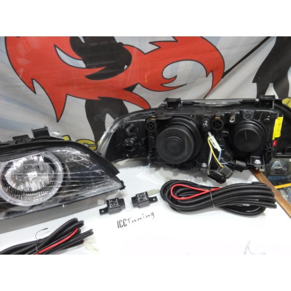 Farois frontais Angel eyes BMW E39 Fundo preto 95-03 Ver maior