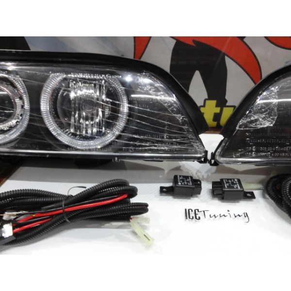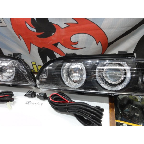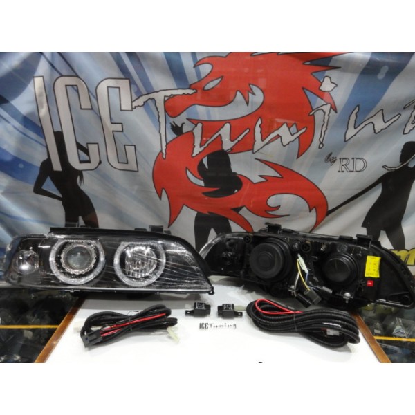 Farois frontais Angel eyes BMW E39 Fundo preto 95-03