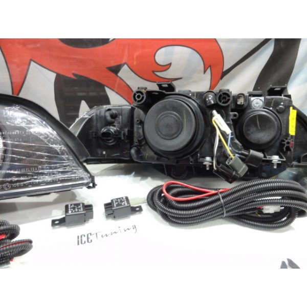 Kit 4 - faróis + lâmpadas HOD 5000k (medios) + lâmpadas 5000k (máximos) + pelicula de proteção + kit de instalação - 363e