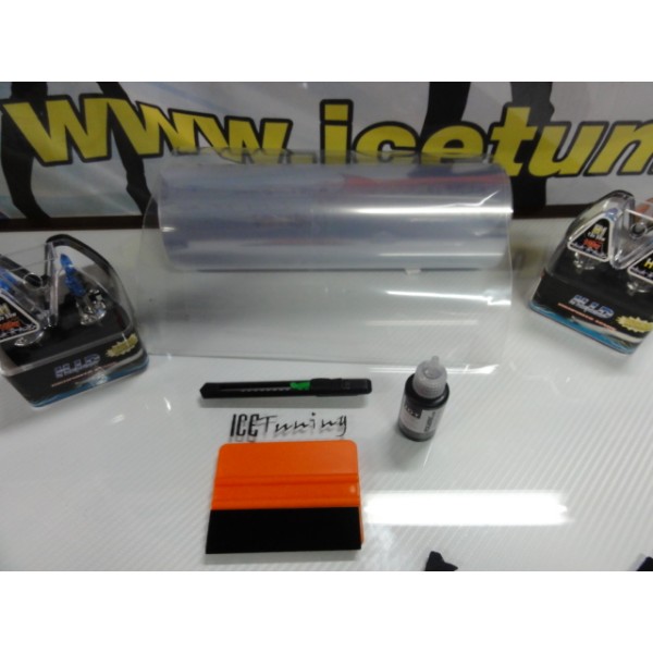 Kit 4L - faróis + lâmpadas LED 6000k (medios 3000 LUMENS) + lâmpadas 5000k (máximos) + pelicula de proteção + kit de instalação - 400e