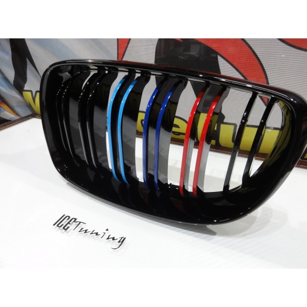 Grelha frontal em preto piano brilhante para BMW E46 98-01 M4 look / dupla lamina em plástico ABS