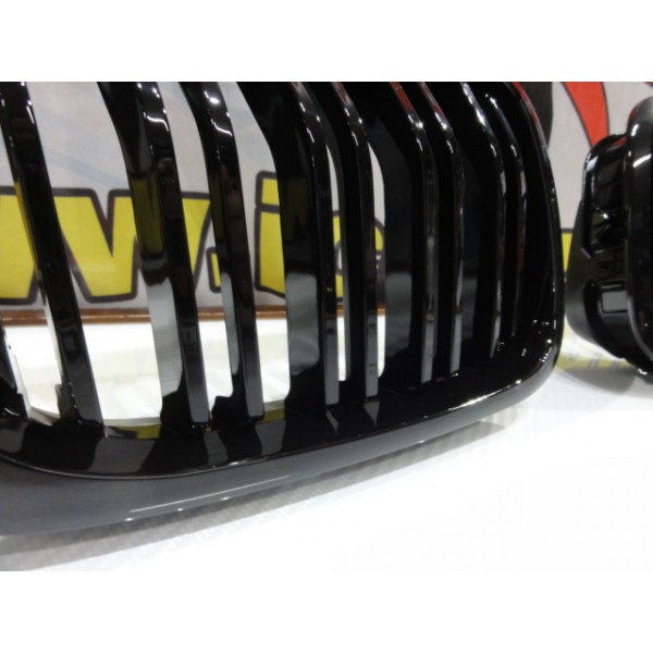 Grelha frontal BMW E46 COUPE / CABRIO 99-03 M4 look / dupla lamina em preto piano brilhante