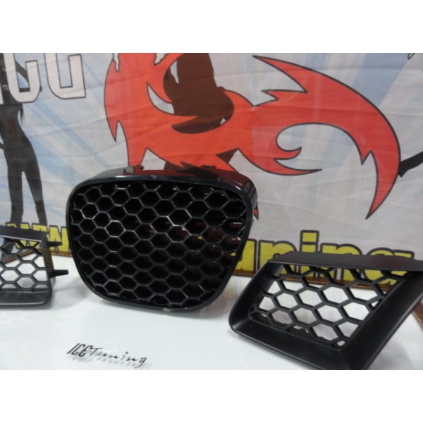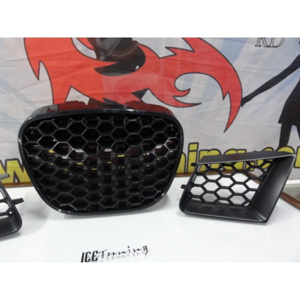Kit 3 Grelhas (Frontal e laterais) em favo de mel para Seat Ibiza 6L 2002-2008 tipo Cupra em plástico